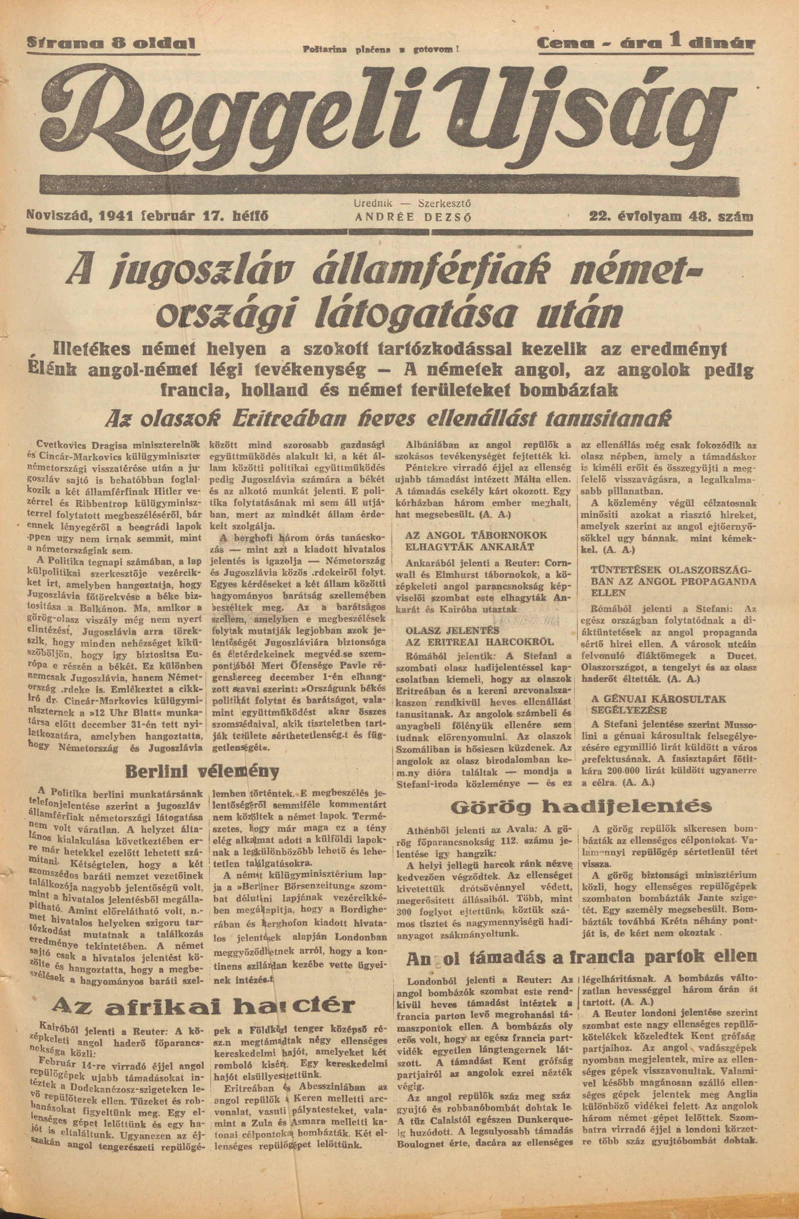 Reggeli Újság, 22. évf. 1941. február 17. 48. sz.