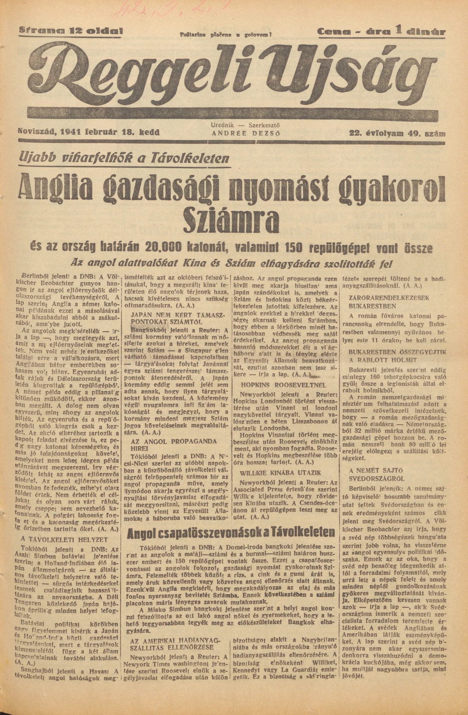 Reggeli Újság, 22. évf. 1941. február 18. 49. sz.