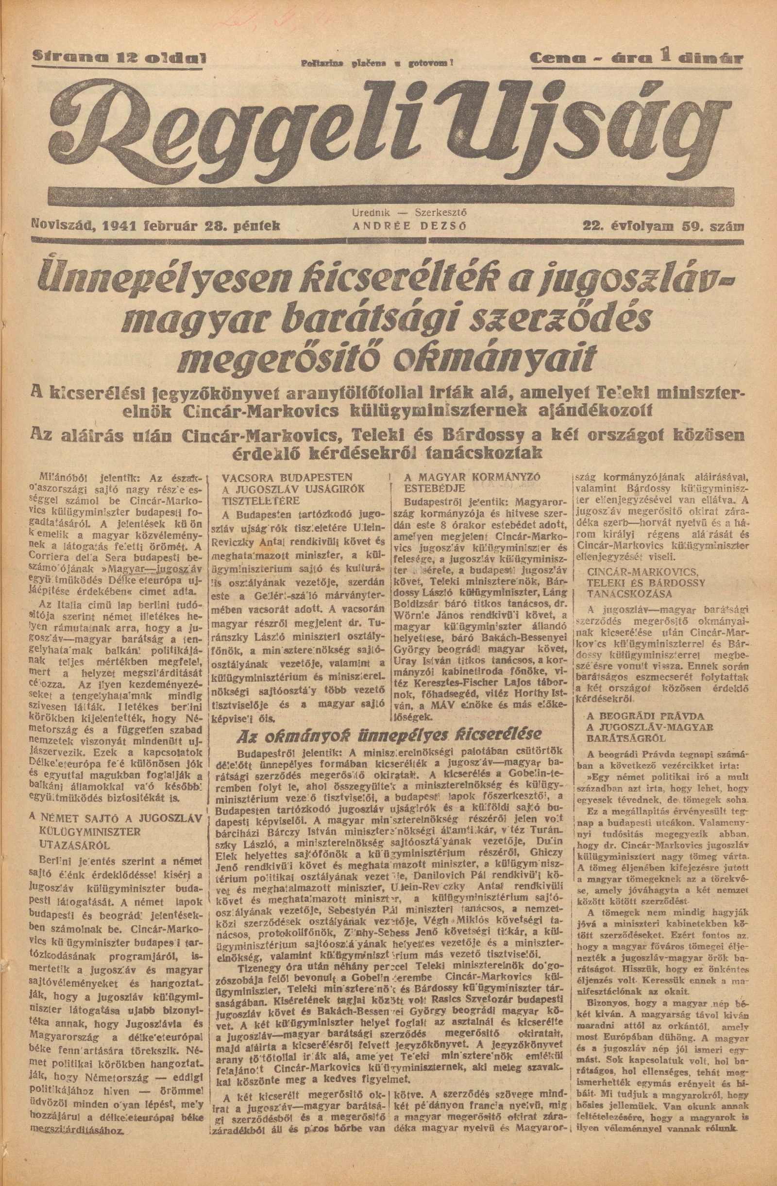 Reggeli Újság, 22. évf. 1941. február 28. 59. sz.