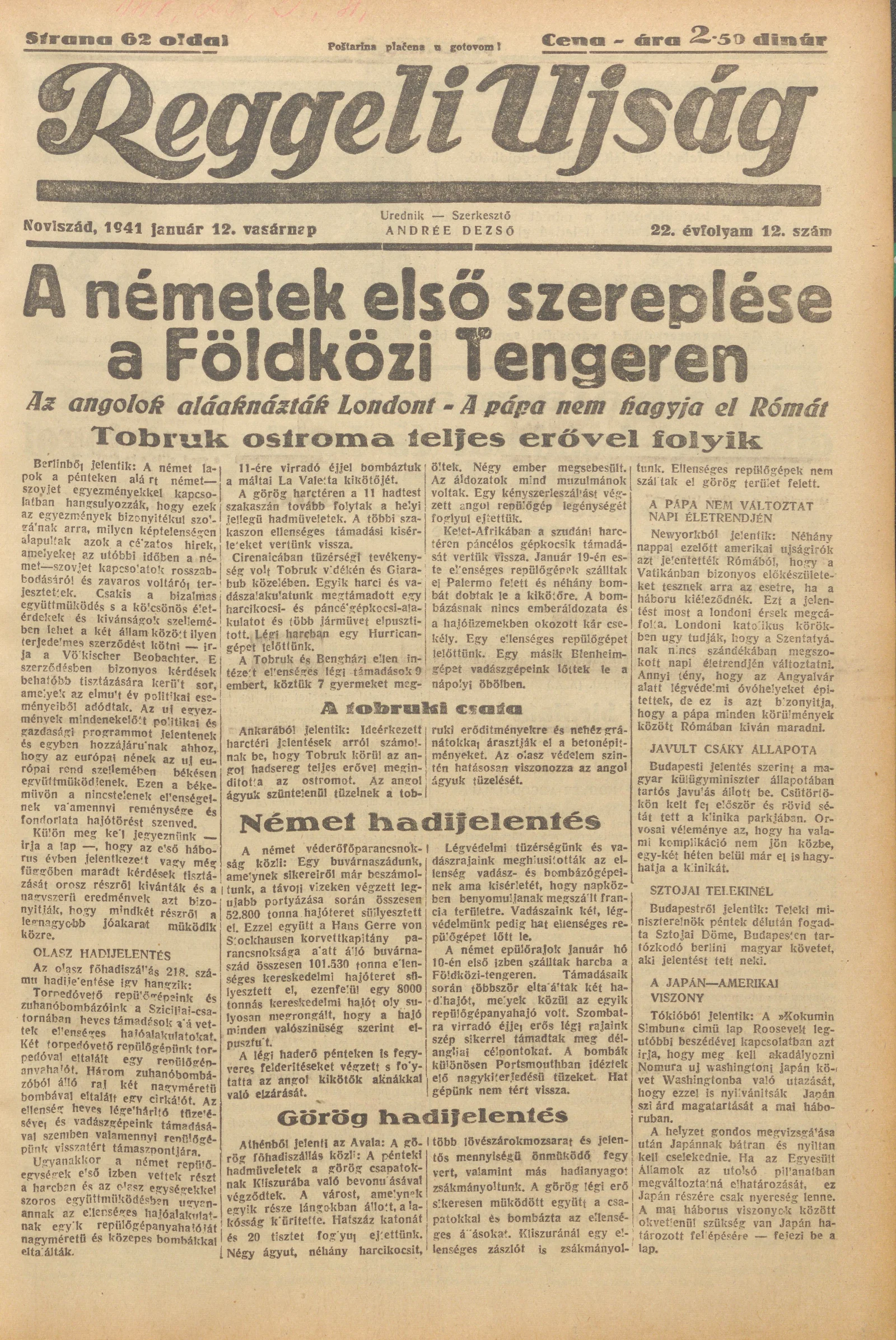 Reggeli Újság, 22. évf. 1941. január 12. 12. sz.