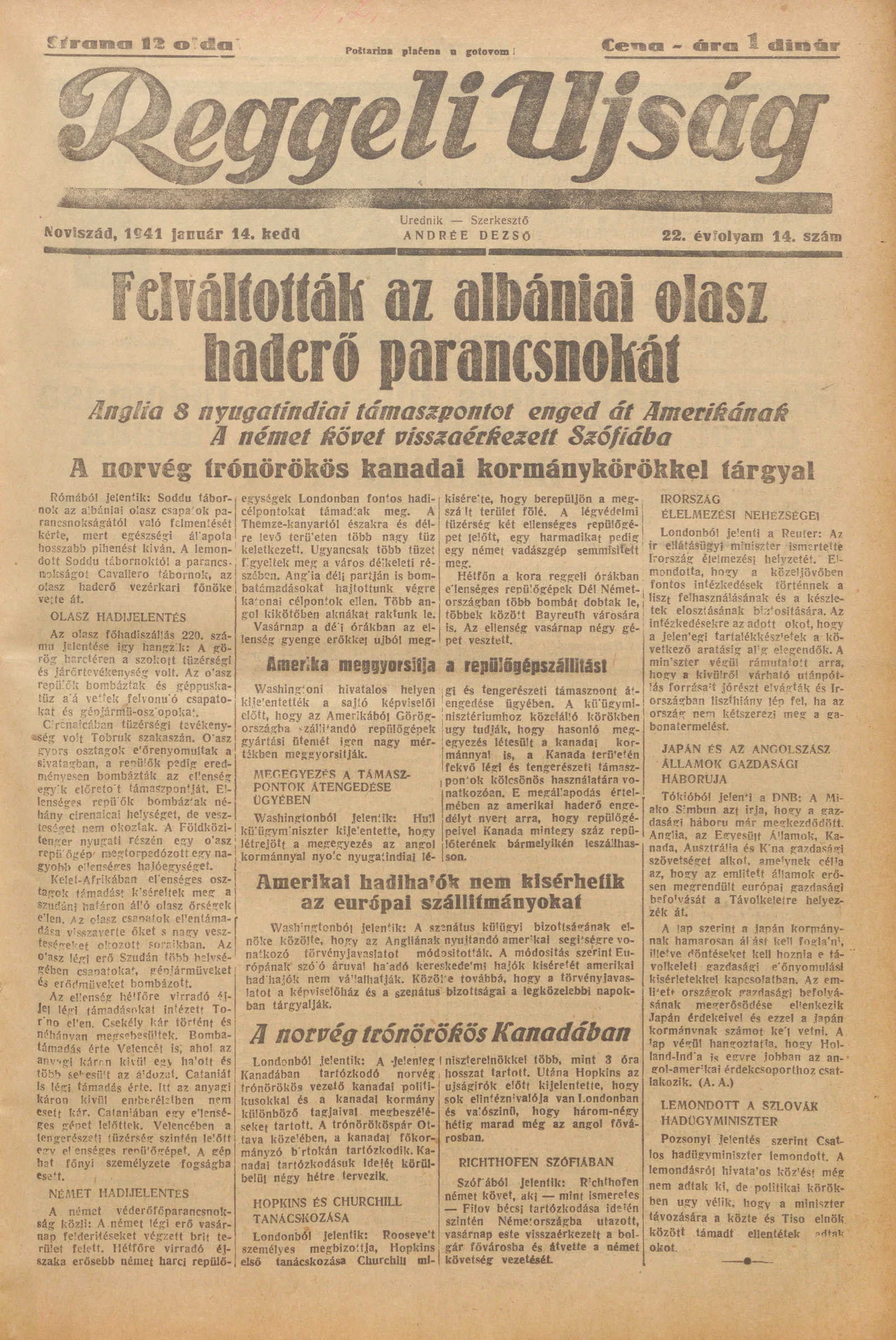 Reggeli Újság, 22. évf. 1941. január 14. 14. sz.