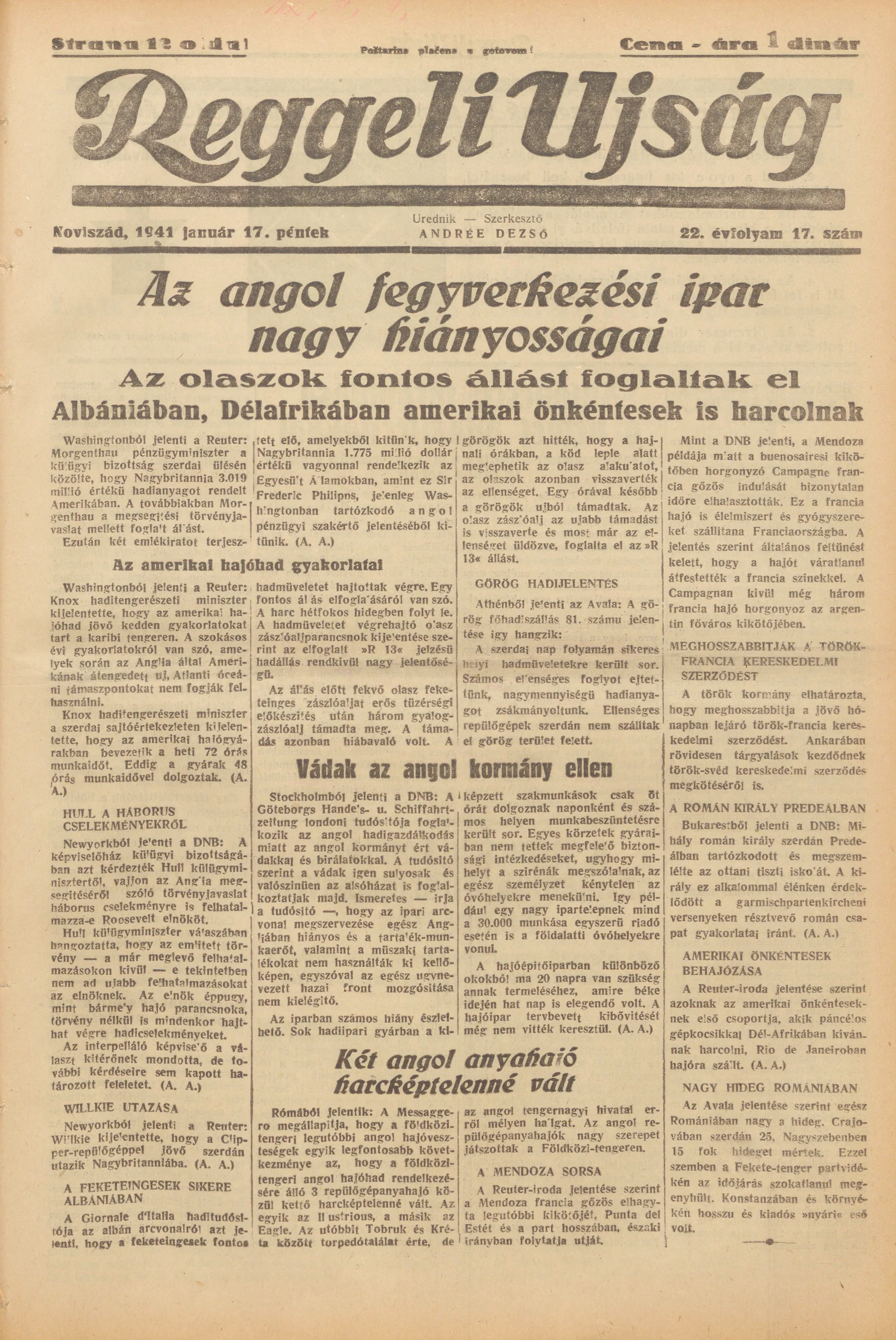 Reggeli Újság, 22. évf. 1941. január 17. 17. sz.