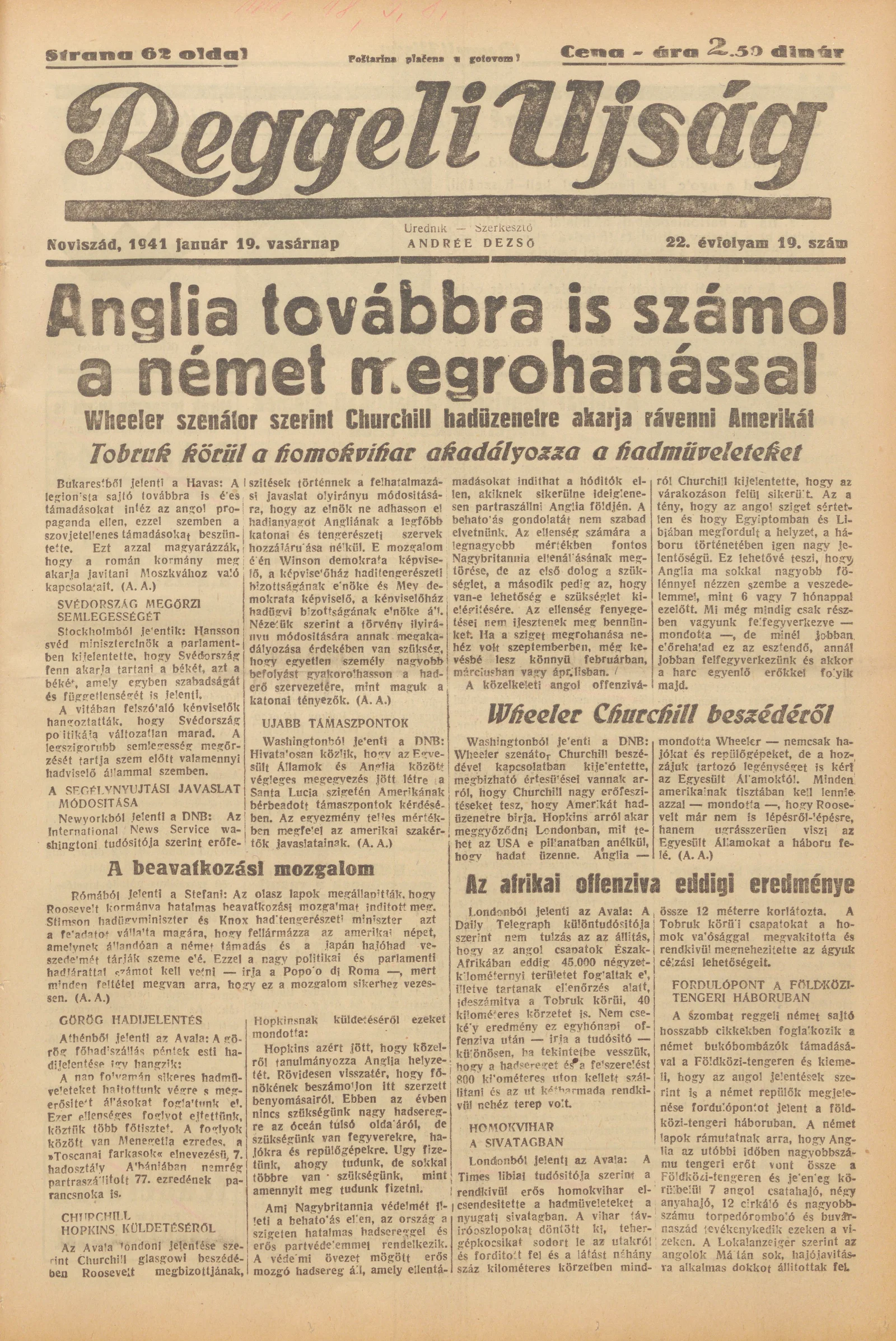 Reggeli Újság, 22. évf. 1941. január 19. 19. sz.
