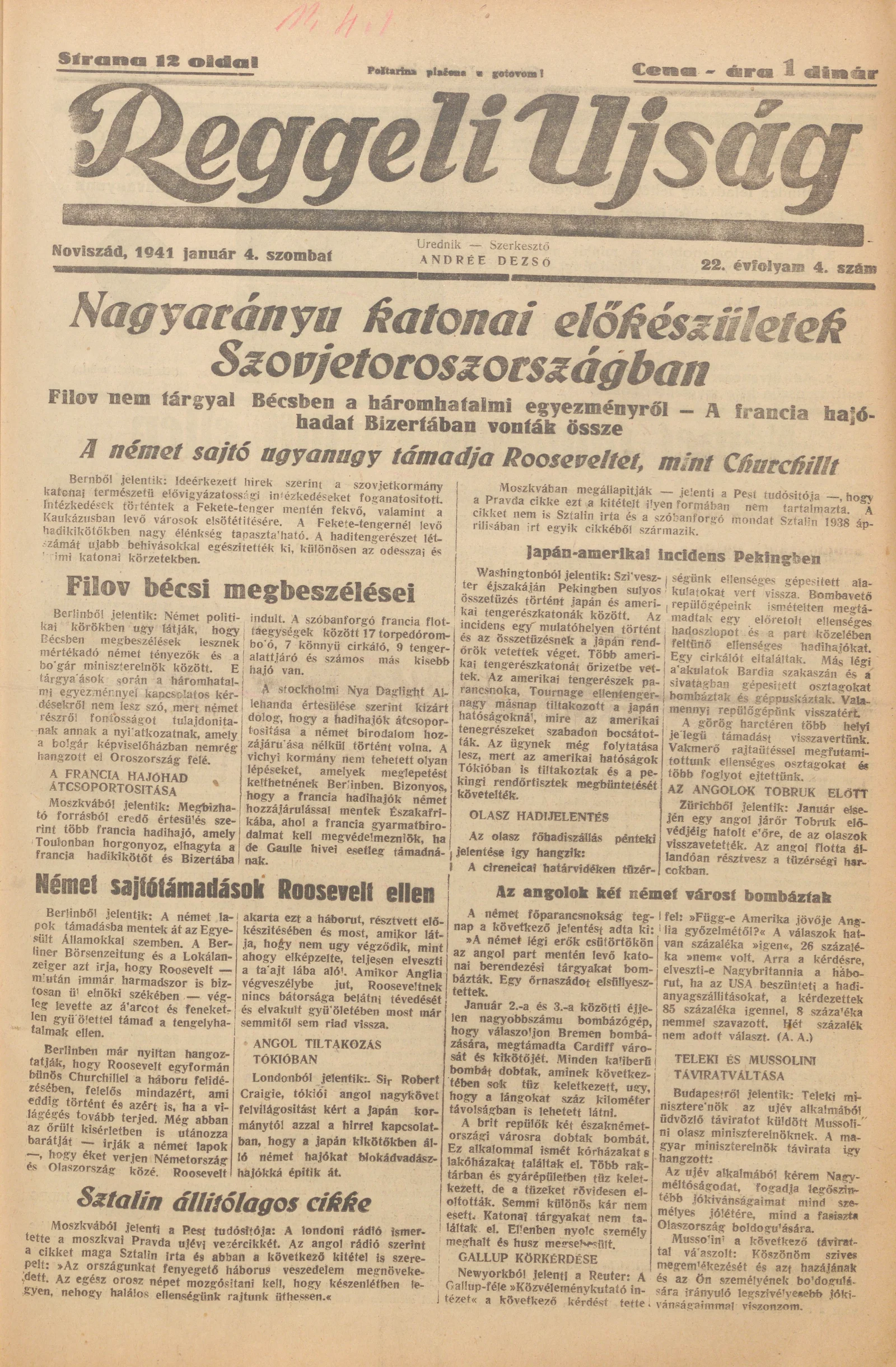 Reggeli Újság, 22. évf. 1941. január 4. 4. sz.
