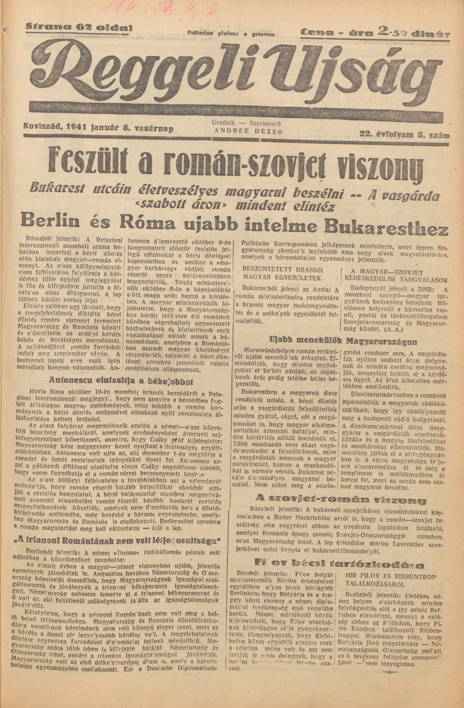 Reggeli Újság, 22. évf. 1941. január 5. 5. sz.