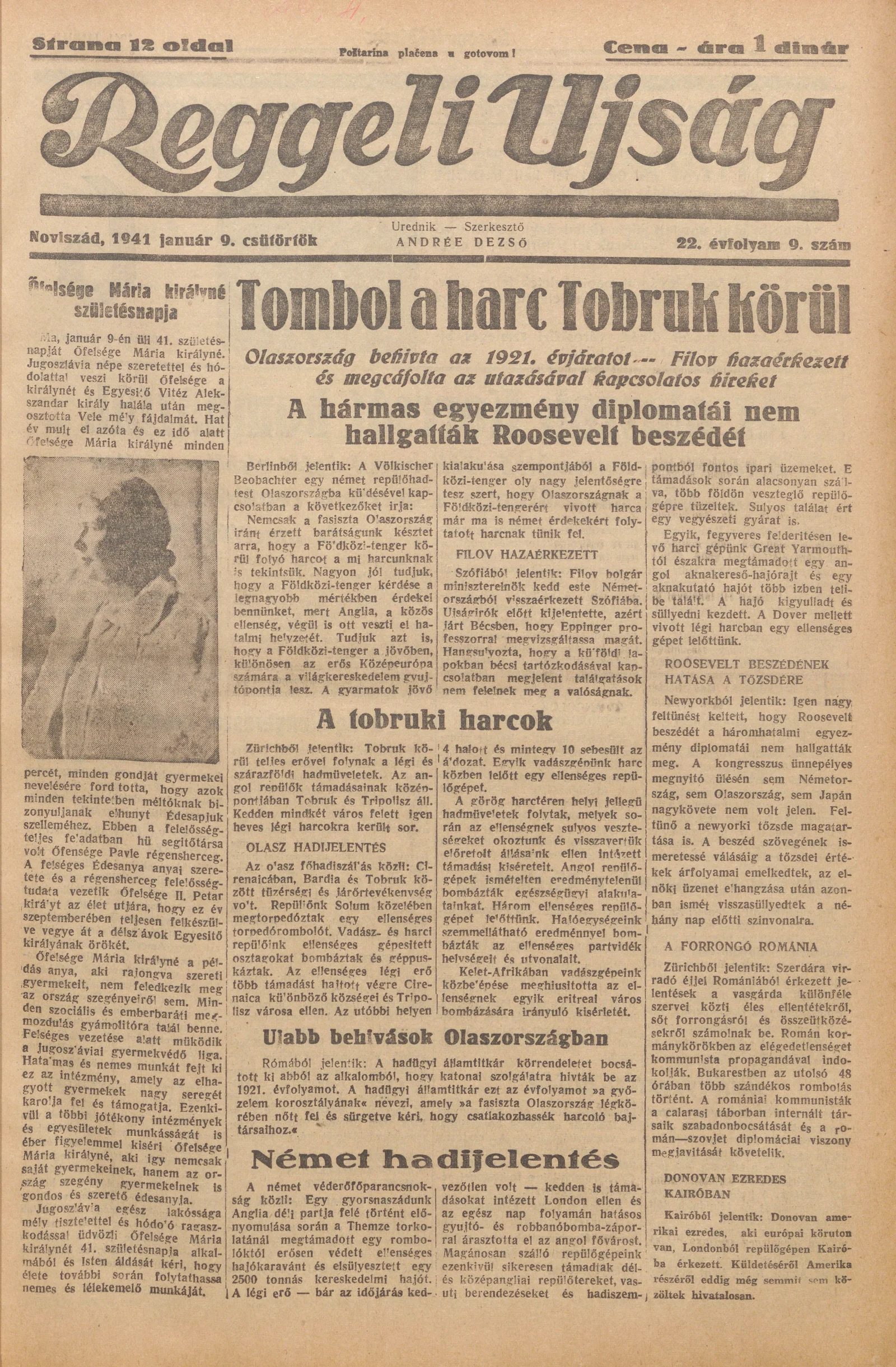 Reggeli Újság, 22. évf. 1941. január 9. 9. sz.