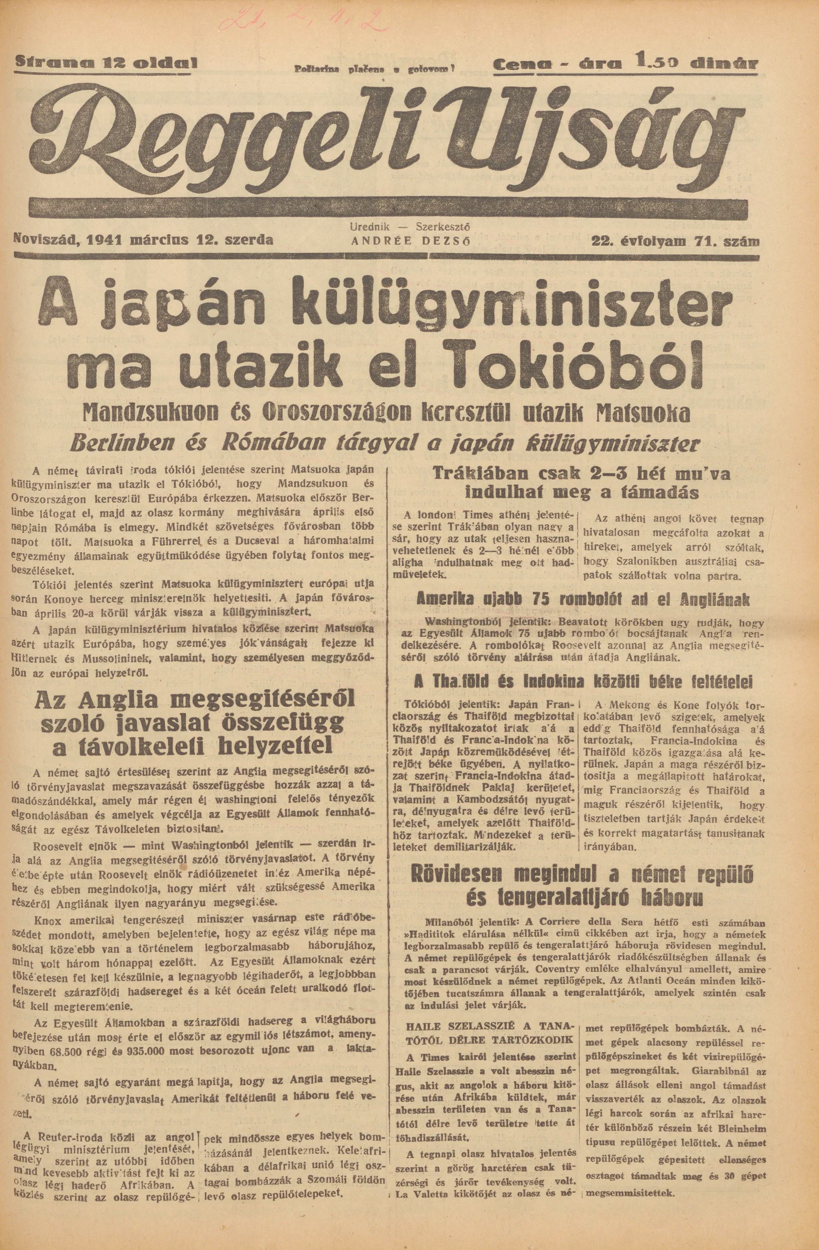 Reggeli Újság, 22. évf. 1941. március 12. 71. sz.