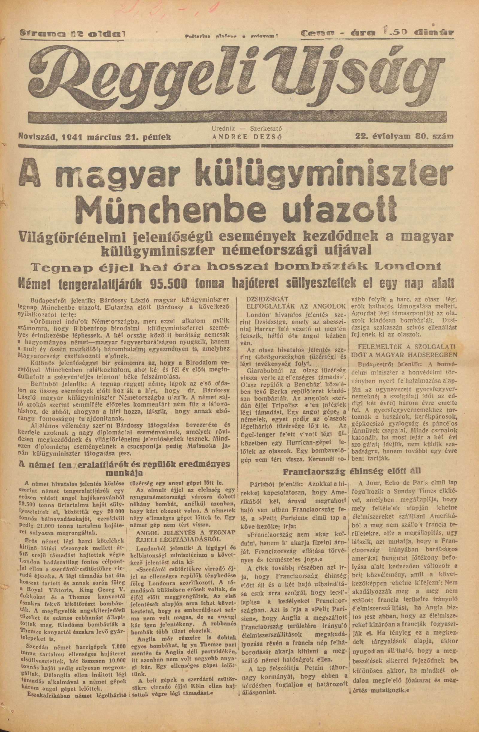 Reggeli Újság, 22. évf. 1941. március 21. 80. sz.