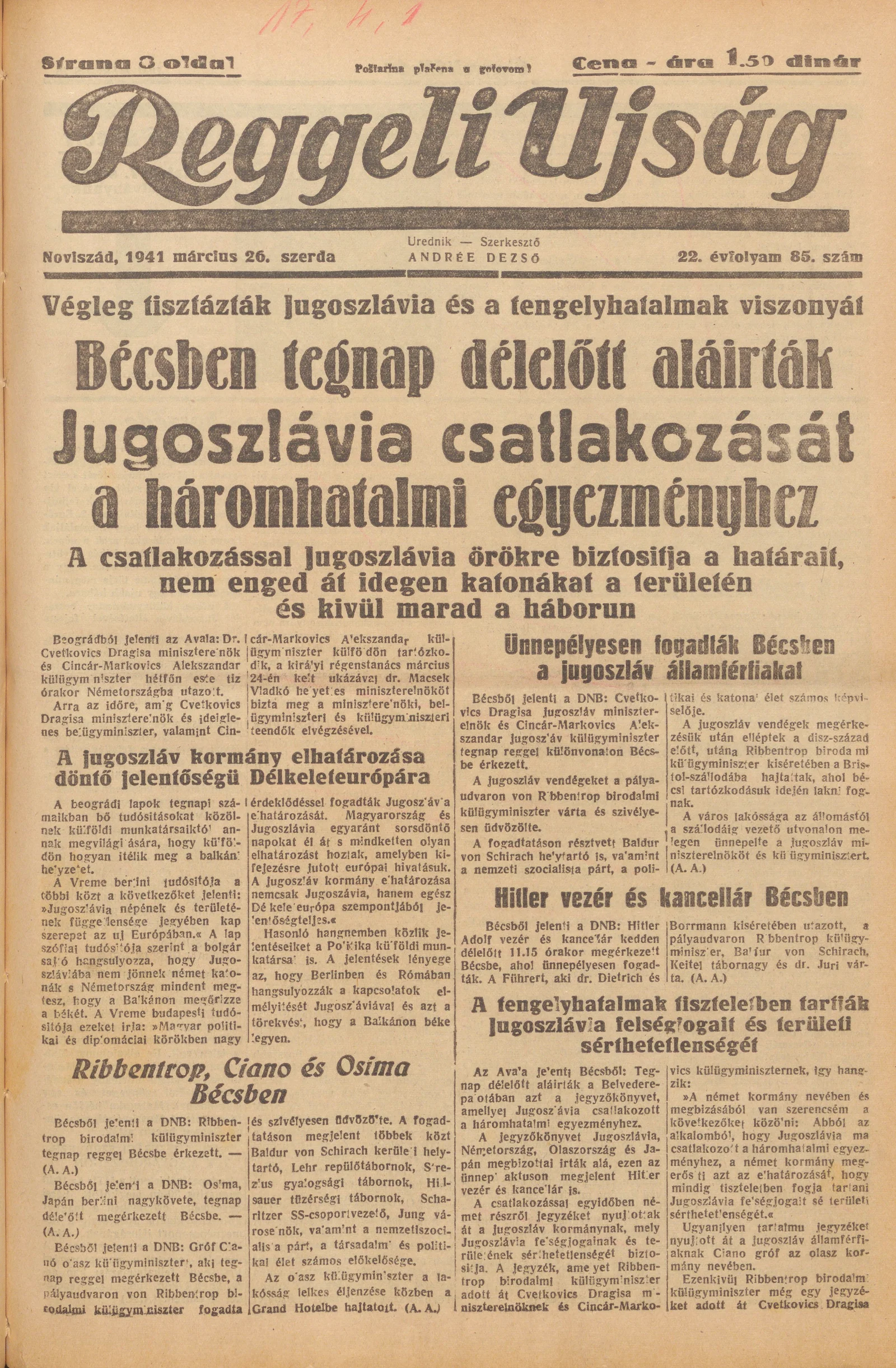 Reggeli Újság, 22. évf. 1941. március 26. 85. sz.