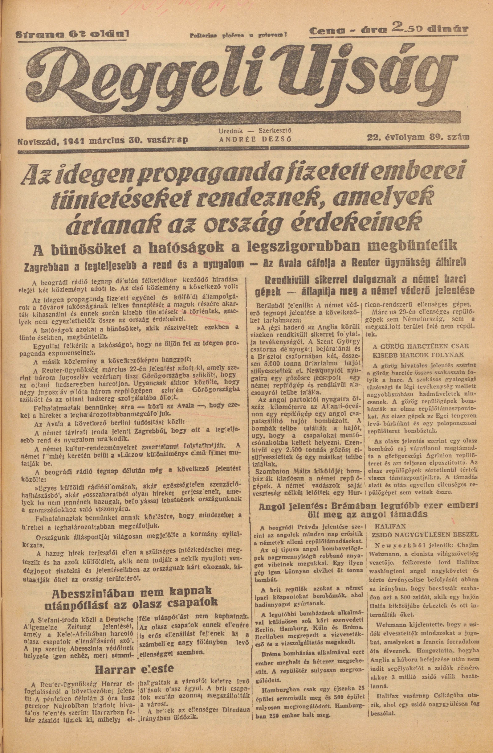 Reggeli Újság, 22. évf. 1941. március 30. 89. sz.