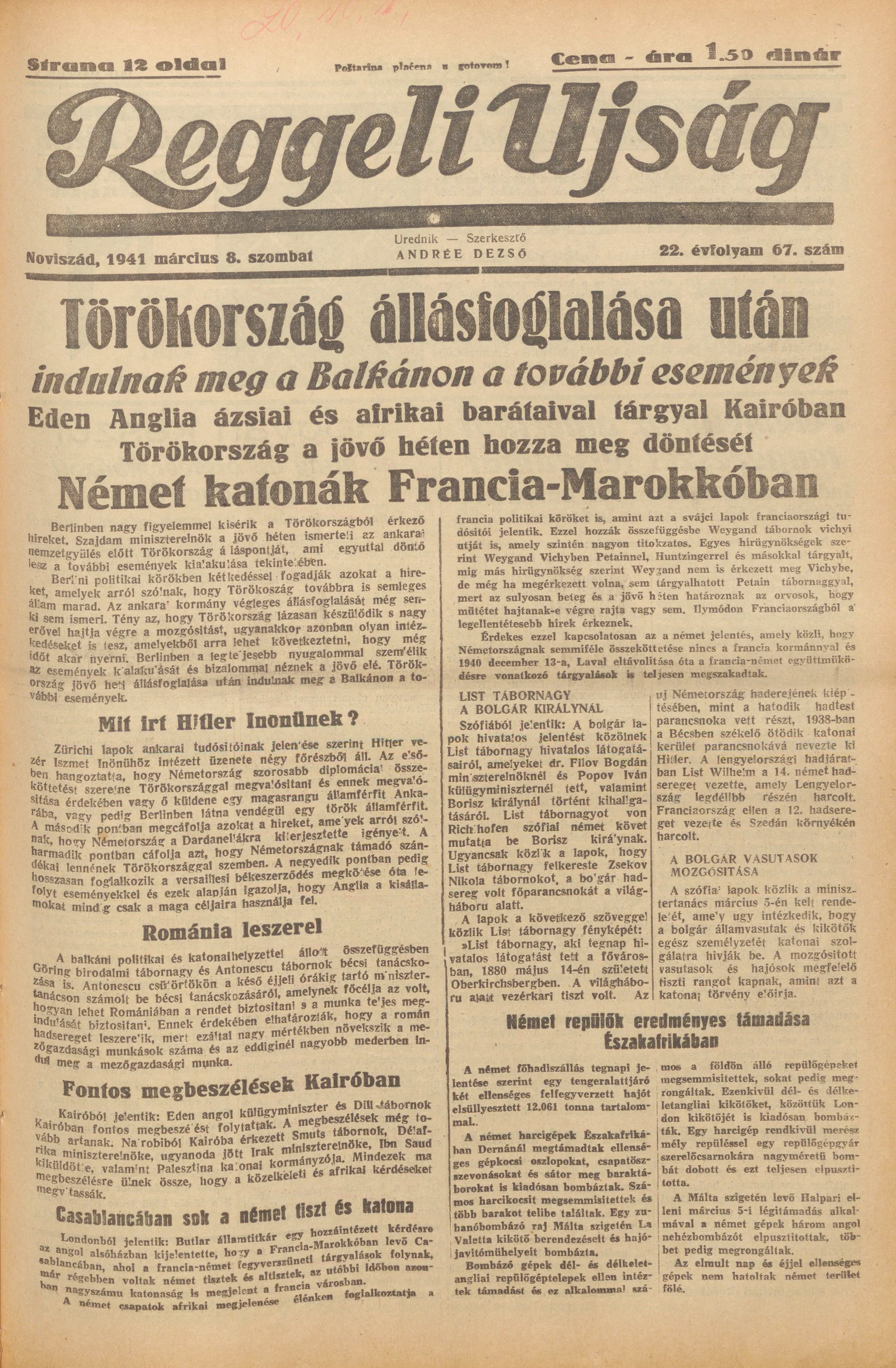 Reggeli Újság, 22. évf. 1941. március 8. 67. sz.