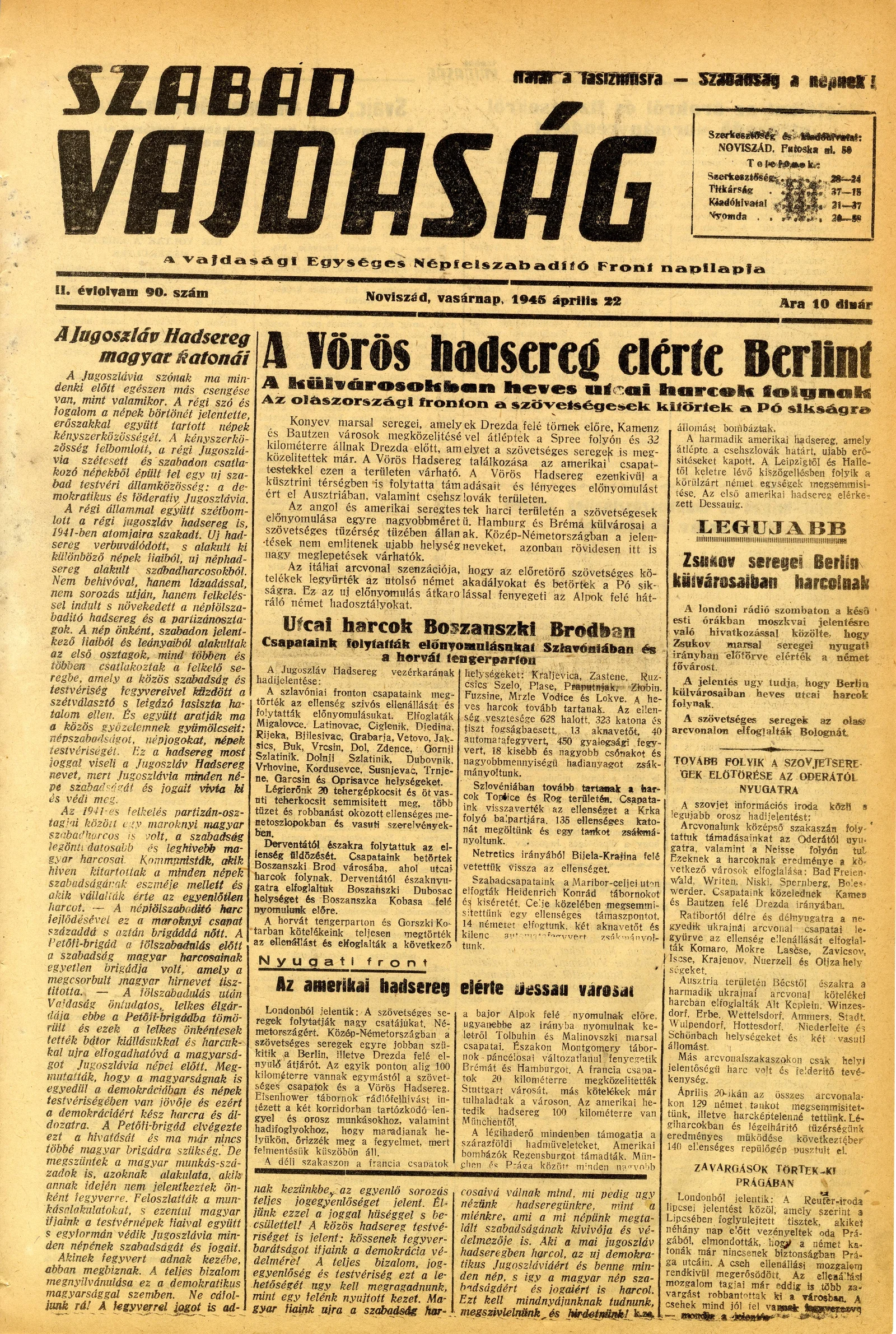 Szabad Vajdaság, 2. évf. 1945. április 22. 90. sz.