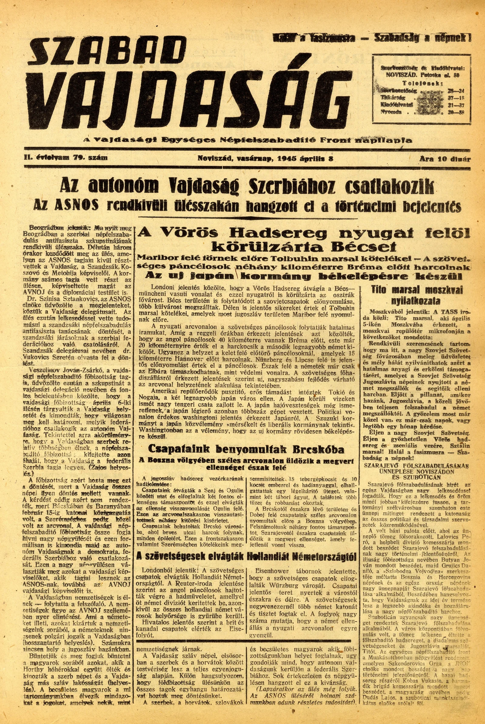 Szabad Vajdaság, 2. évf. 1945. április 8. 79. sz. | Vamadia