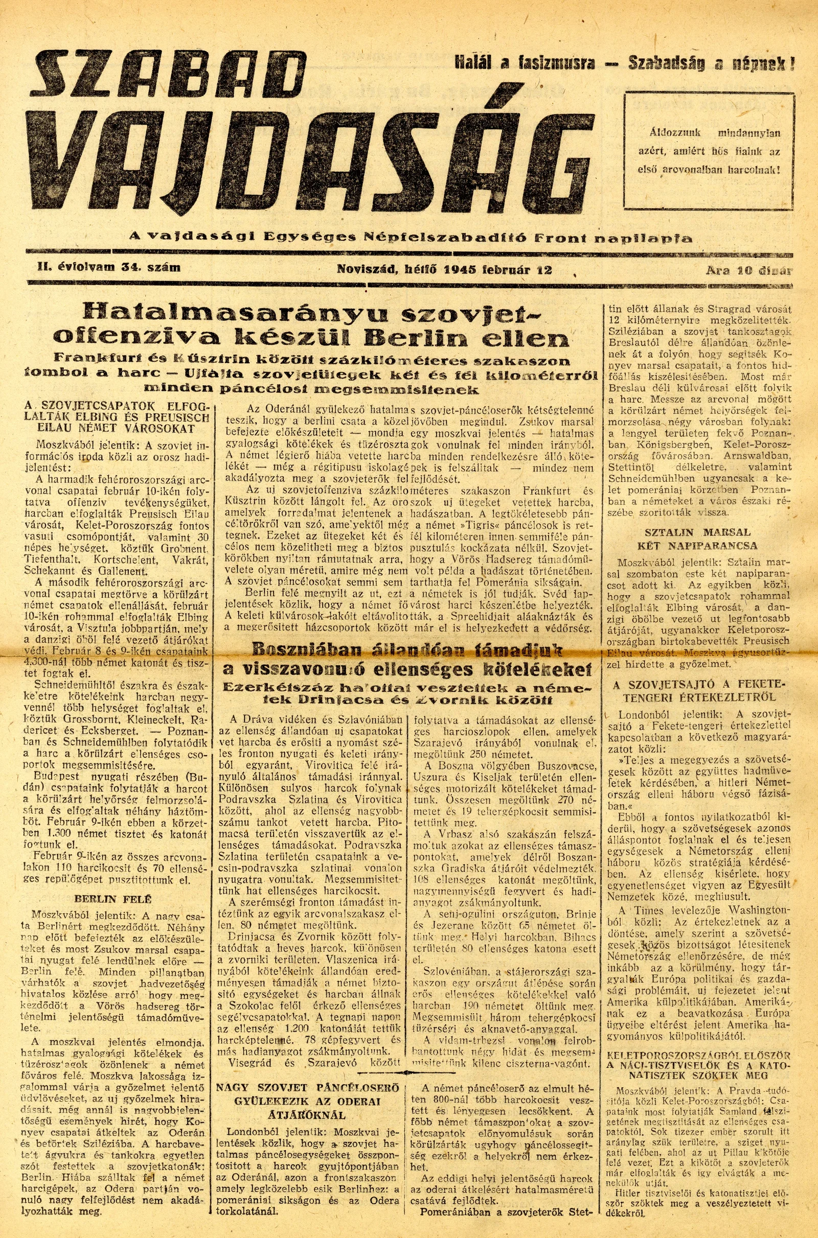 Szabad Vajdaság, 2. évf. 1945. február 12. 34. sz.