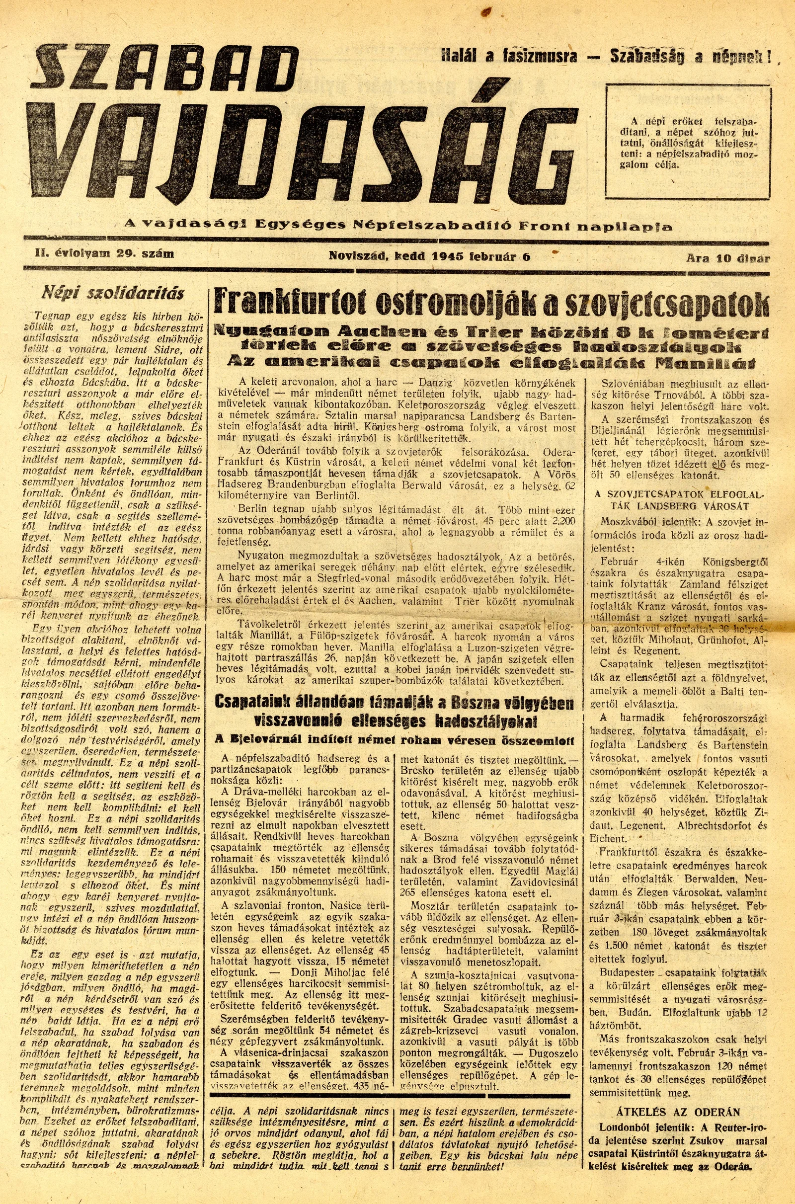 Szabad Vajdaság, 2. évf. 1945. február 6. 29. sz.