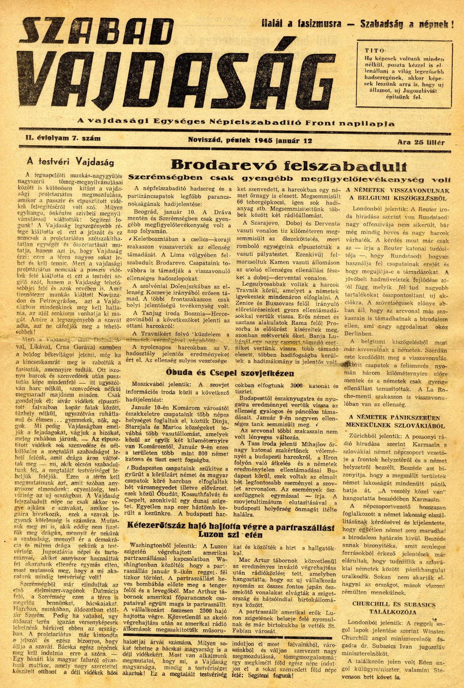 Szabad Vajdaság, 2. évf. 1945. január 12. 7. sz.