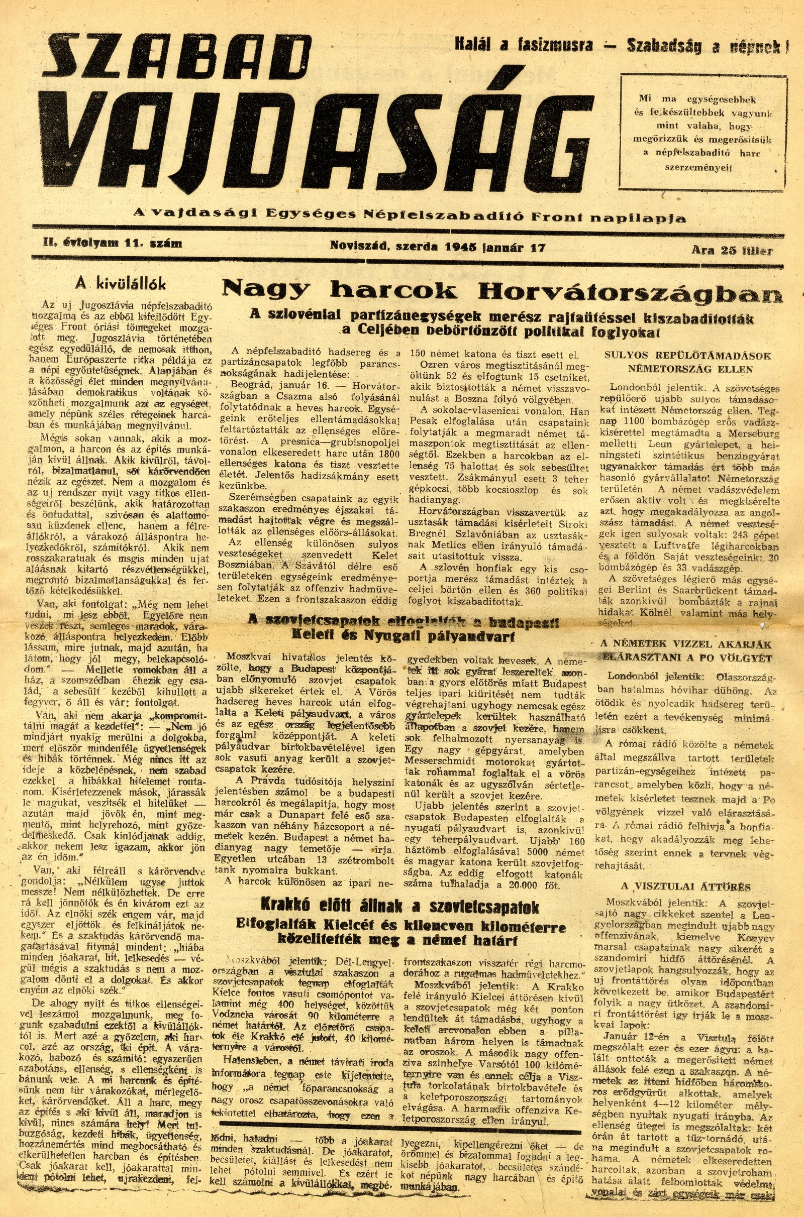 Szabad Vajdaság, 2. évf. 1945. január 17. 11. sz.