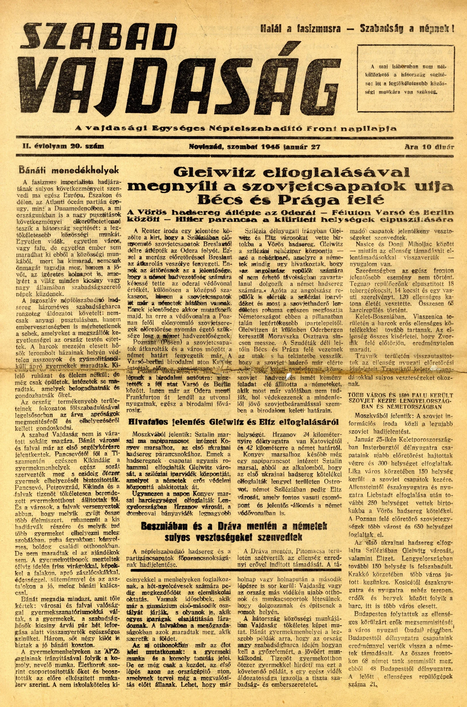 Szabad Vajdaság, 2. évf. 1945. január 27. 20. sz.