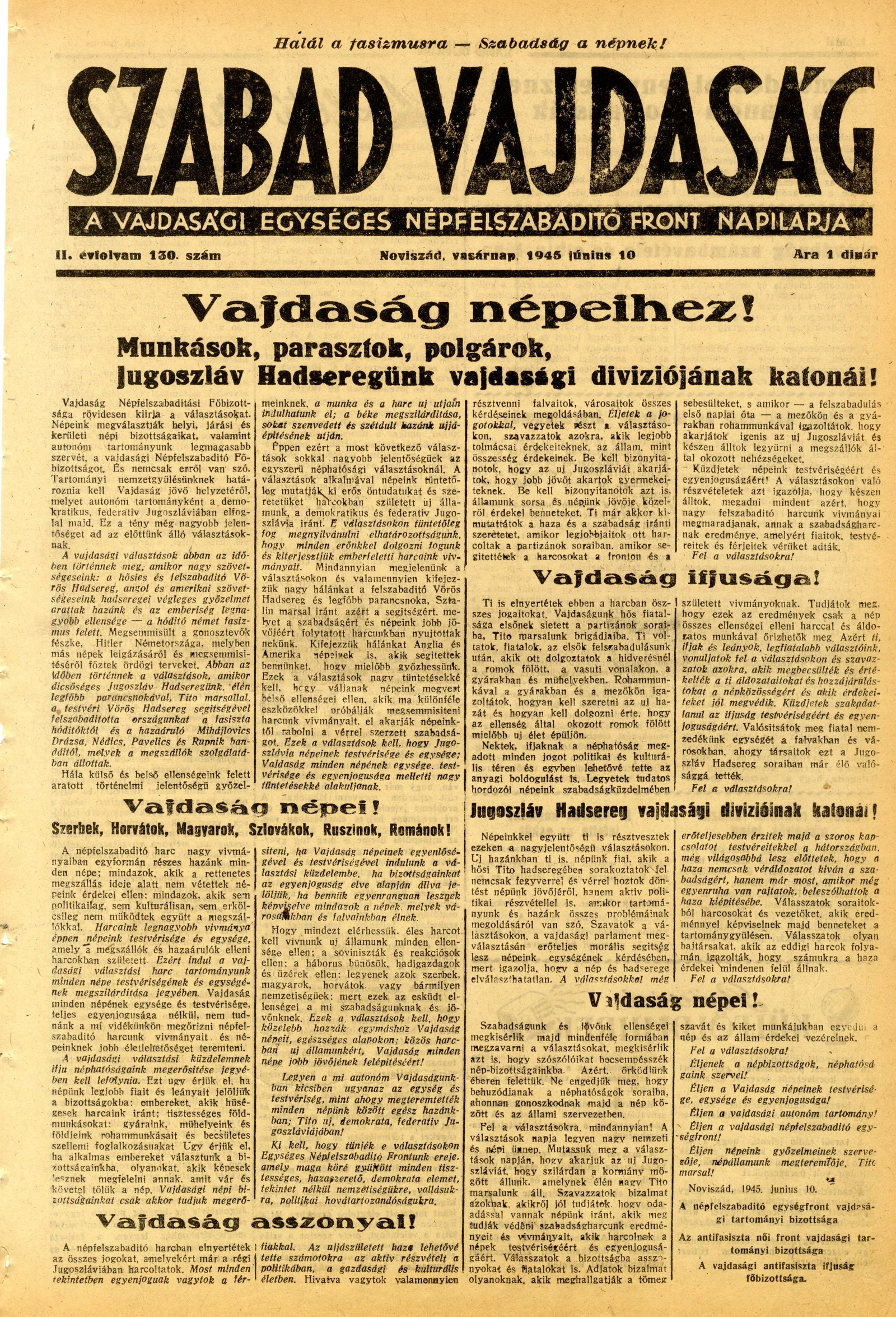 Szabad Vajdaság, 2. évf. 1945. június 10. 130. sz.
