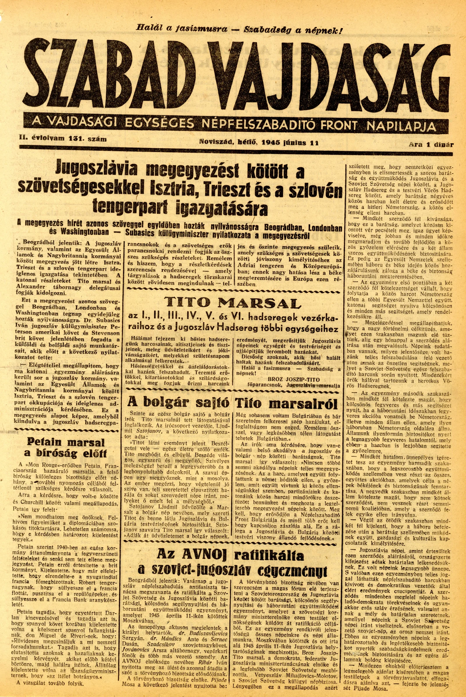 Szabad Vajdaság, 2. évf. 1945. június 11. 131. sz.
