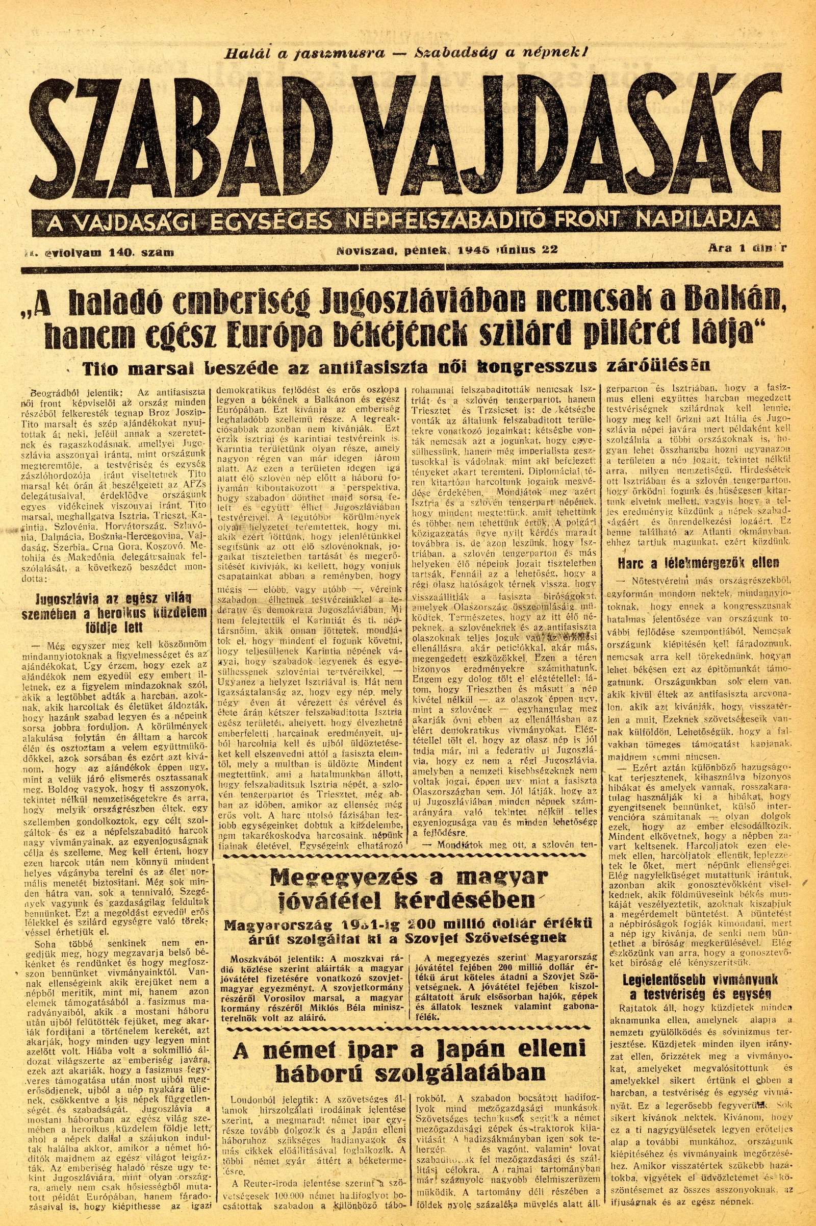 Szabad Vajdaság, 2. évf. 1945. június 22. 140. sz.