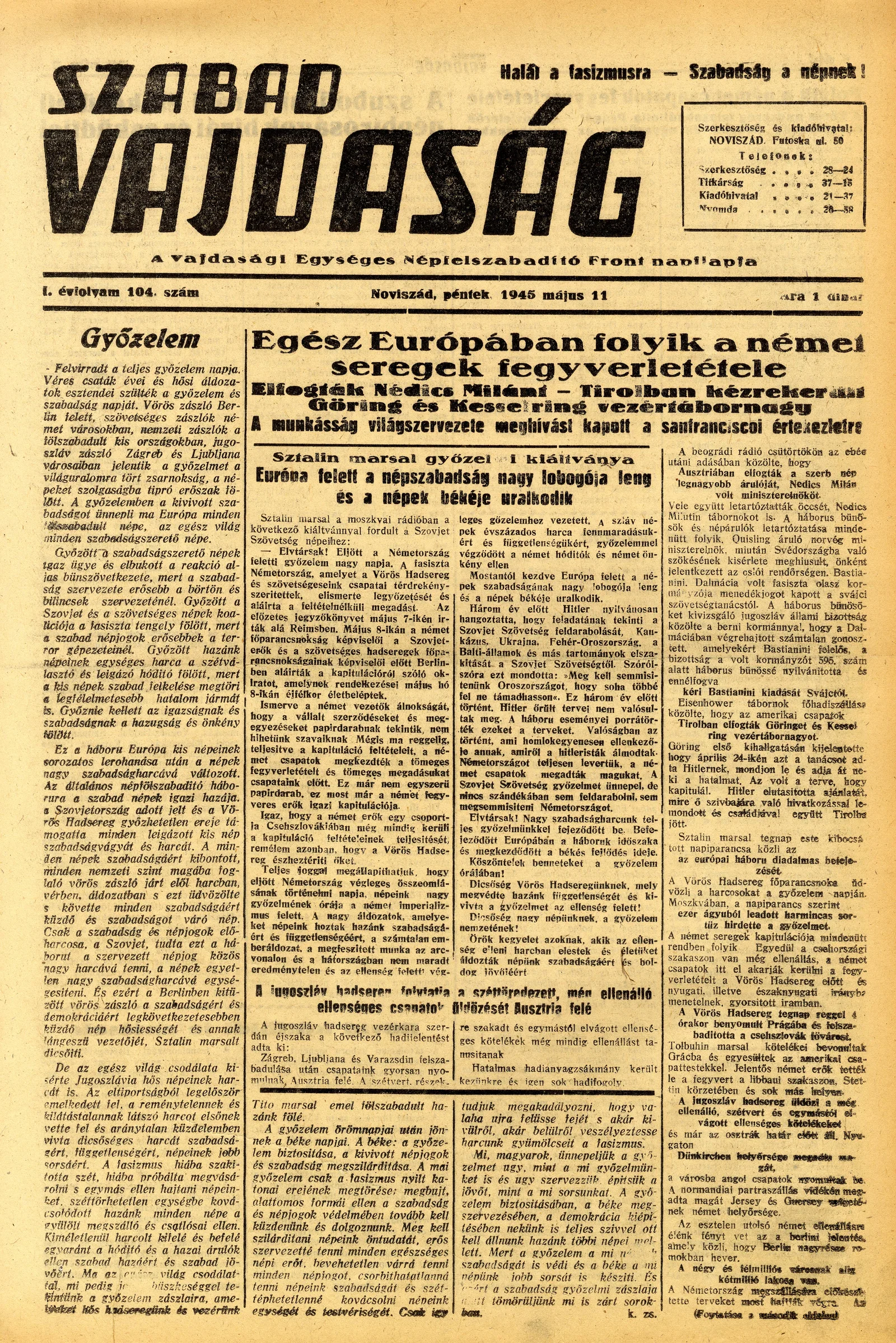 Szabad Vajdaság, 2. évf. 1945. május 11. 104. sz.