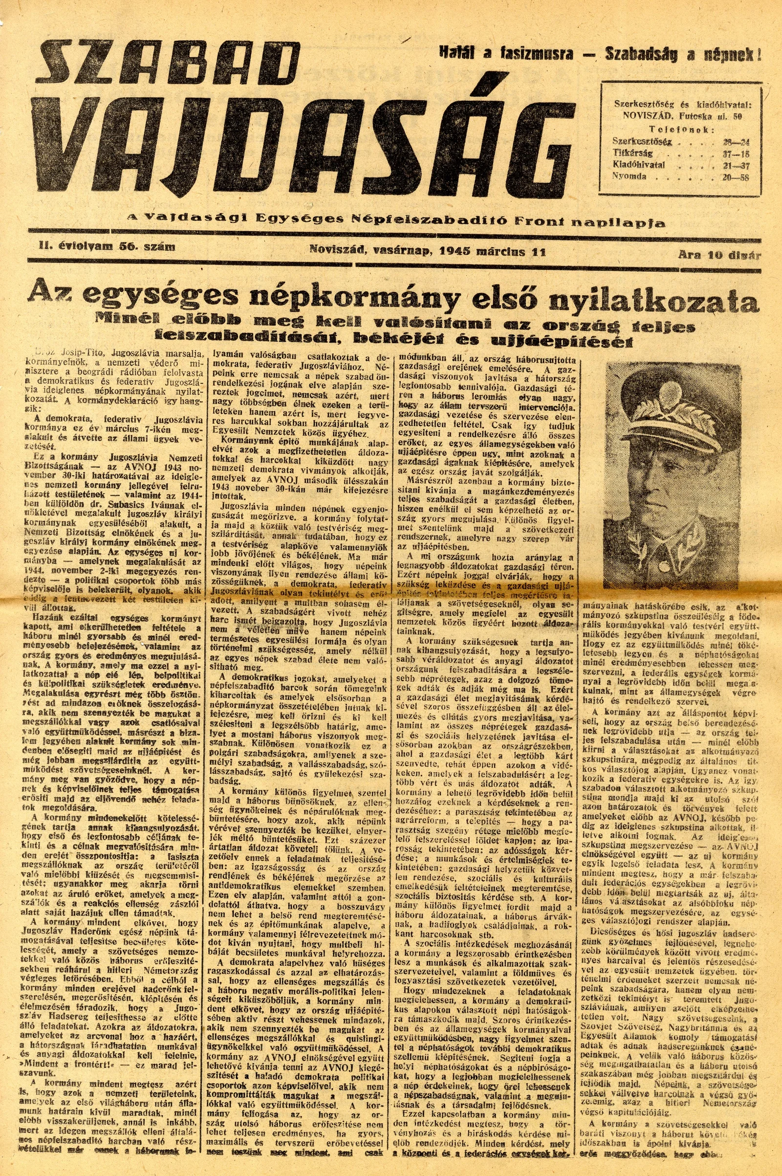 Szabad Vajdaság, 2. évf. 1945. március 11. 56. sz.