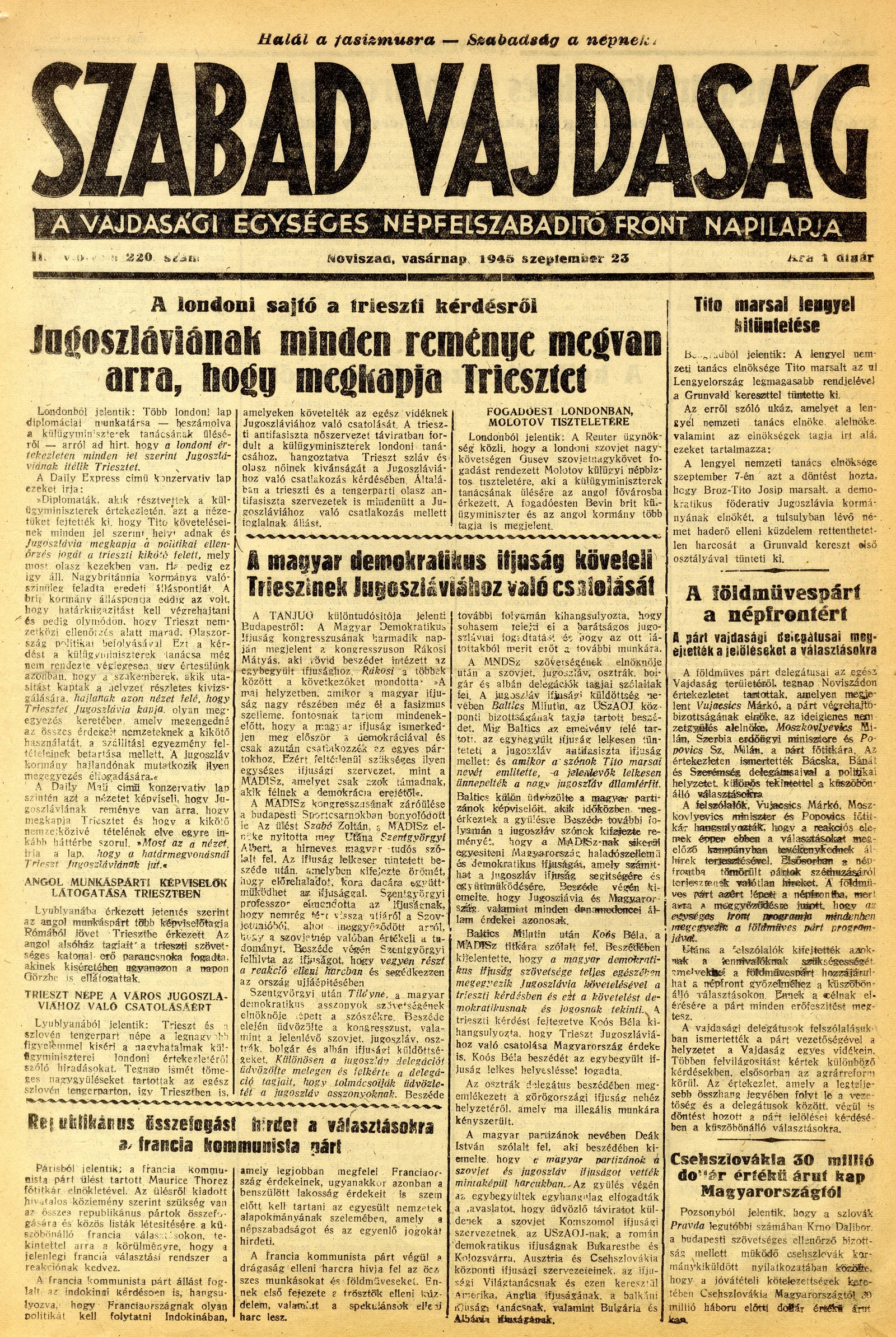 Szabad Vajdaság, 2. évf. 1945. szeptember 23. 220. sz.