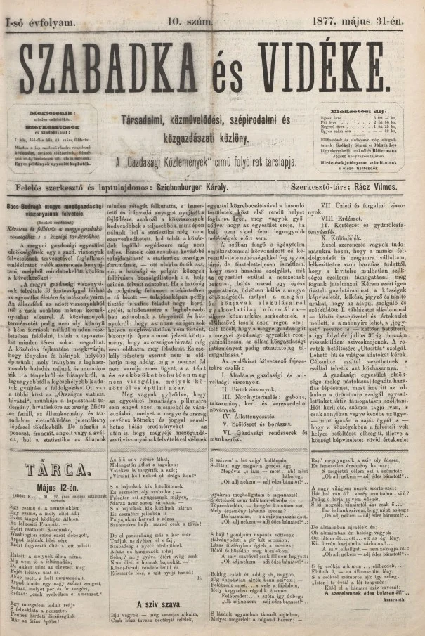 Szabadka és vidéke, 1. évf. 1877. május 31. 10. sz.