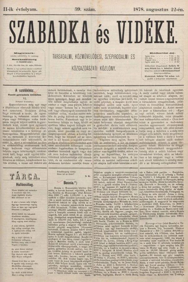 Szabadka és vidéke, 2. évf. 1878. augusztus 22. 59. sz.
