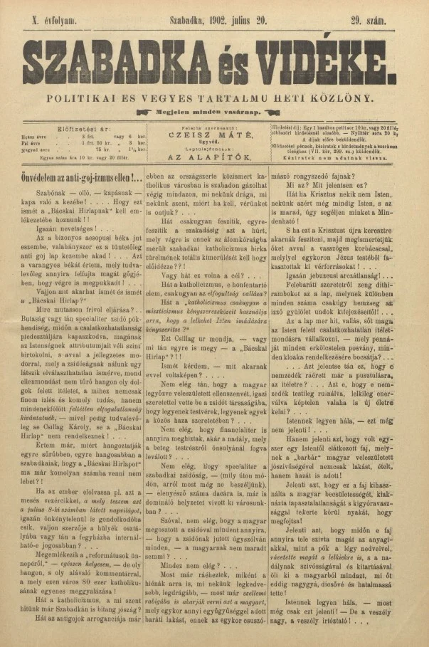 Szabadka és vidéke II, 10. évf. 1902. július 20. 29. sz.