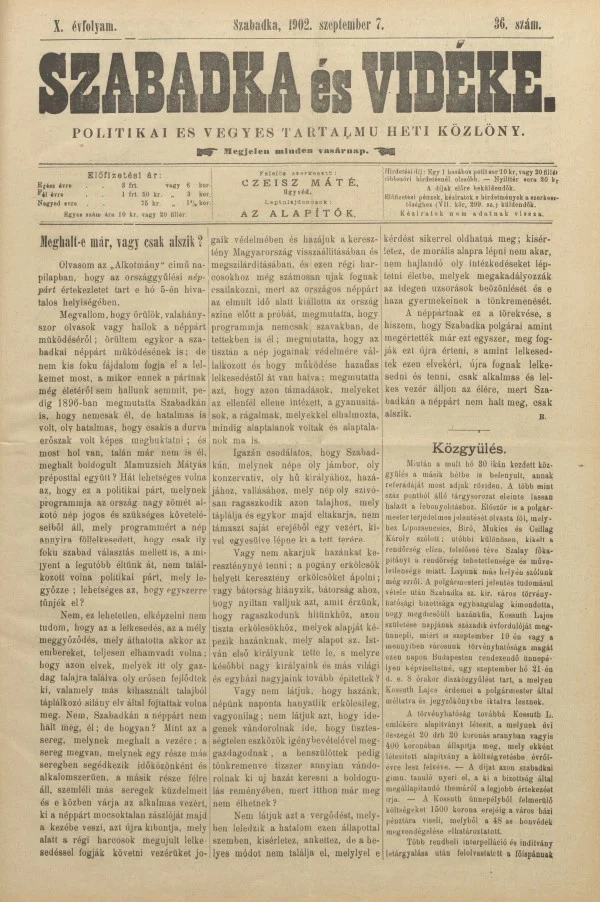 Szabadka és vidéke II, 10. évf. 1902. szeptember 7. 36. sz.
