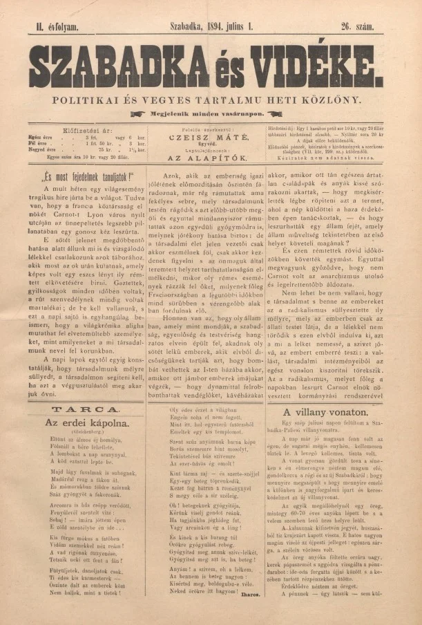 Szabadka és vidéke II, 2. évf. 1894. július 1. 26. sz.