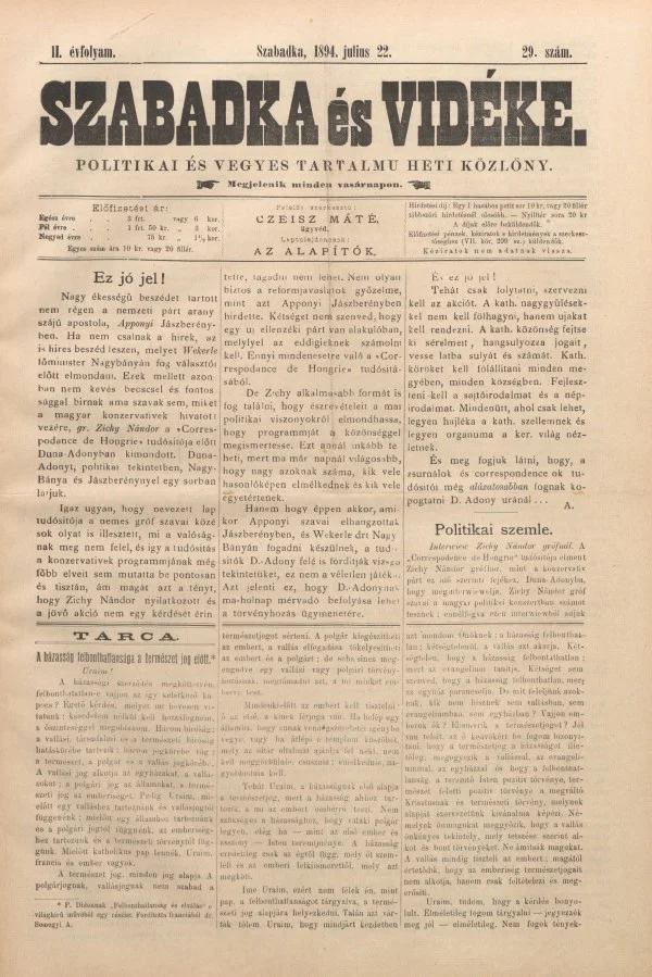 Szabadka és vidéke II, 2. évf. 1894. július 22. 29. sz.