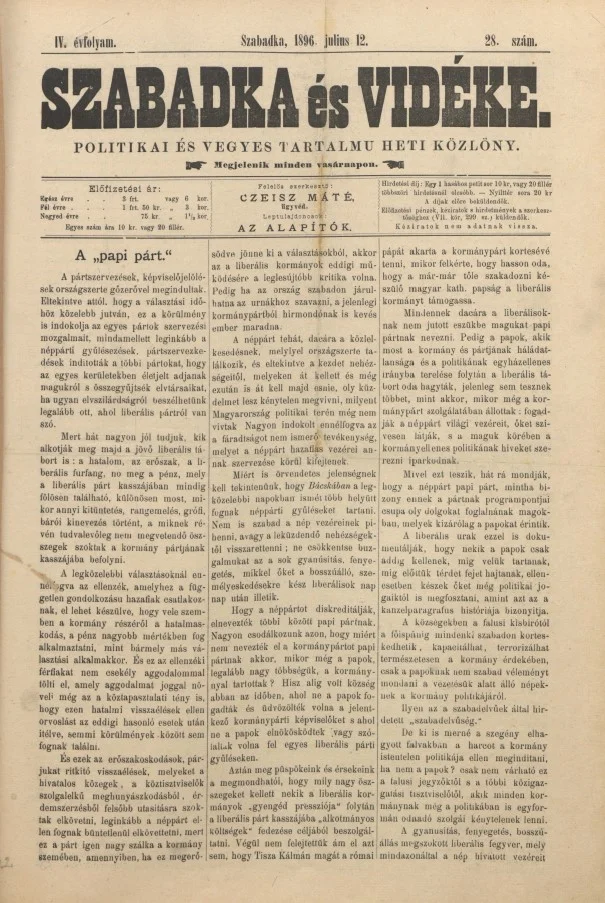 Szabadka és vidéke II, 4. évf. 1896. július 12. 28. sz.