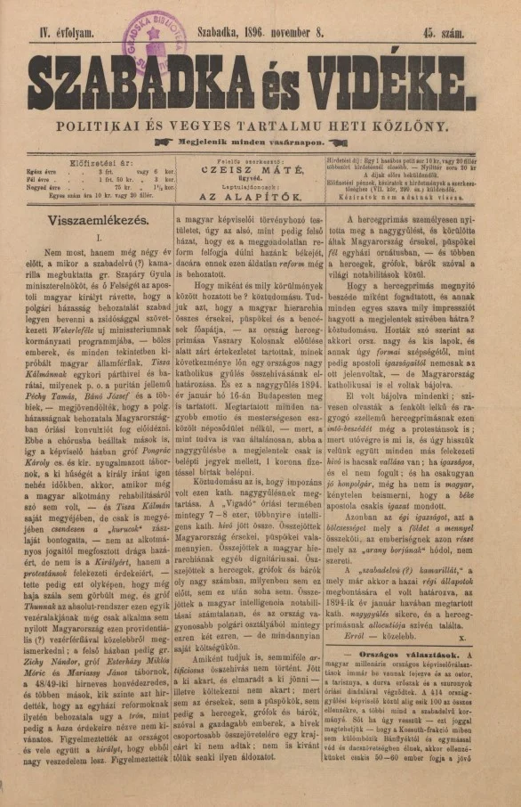 Szabadka és vidéke II, 4. évf. 1896. november 8. 45. sz.