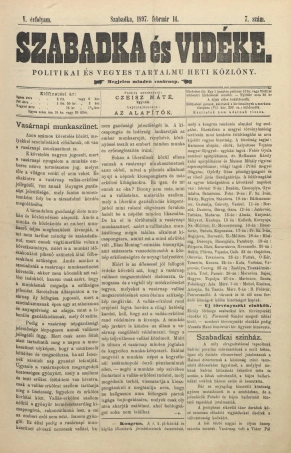 Szabadka és vidéke II, 5. évf. 1897. február 14. 7. sz.