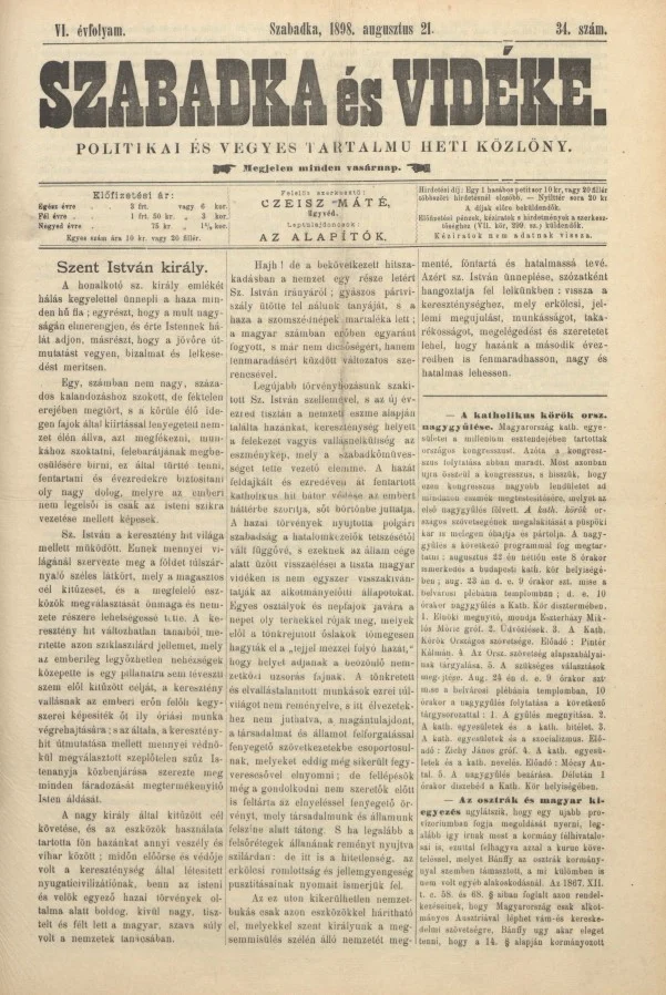 Szabadka és vidéke II, 6. évf. 1898. augusztus 21. 34. sz.