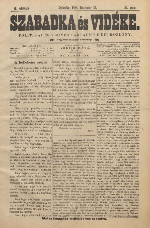 Szabadka és vidéke II, 6. évf. 1898. december 25. 52. sz.