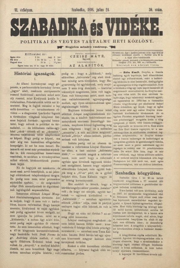 Szabadka és vidéke II, 6. évf. 1898. július 24. 30. sz.