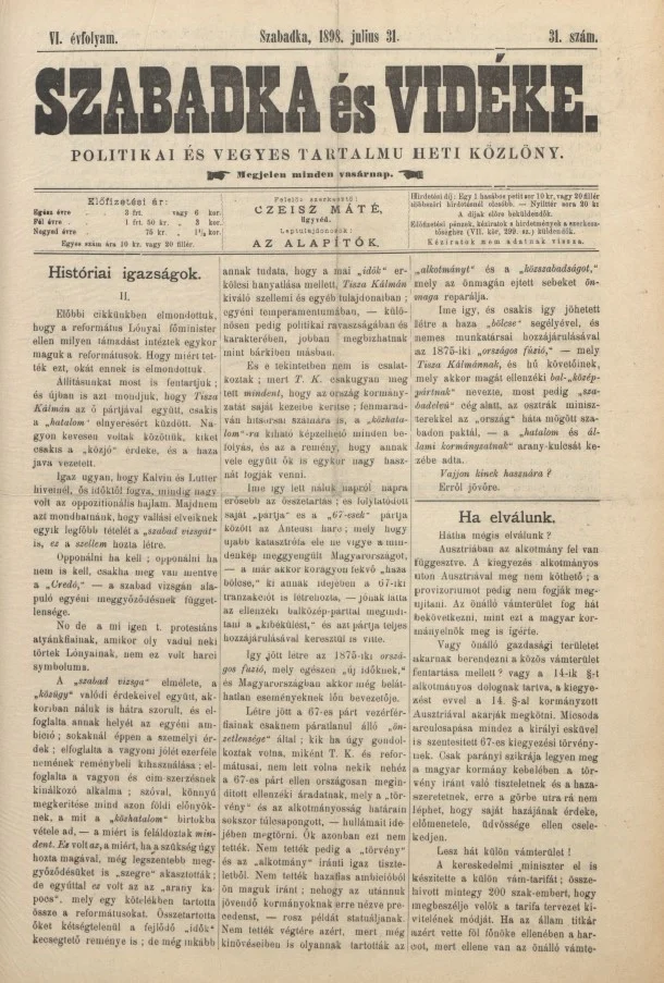 Szabadka és vidéke II, 6. évf. 1898. július 31. 31. sz.