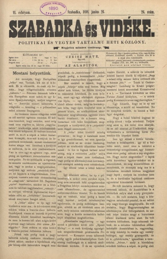Szabadka és vidéke II, 6. évf. 1898. június 26. 26. sz.
