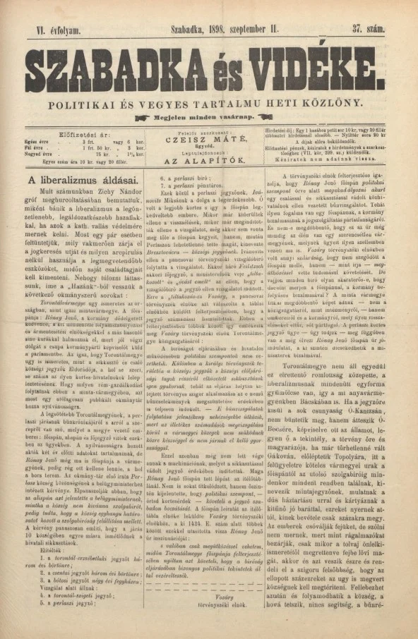 Szabadka és vidéke II, 6. évf. 1898. szeptember 11. 37. sz.