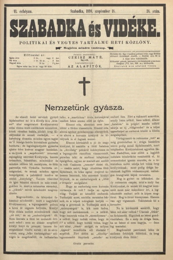 Szabadka és vidéke II, 6. évf. 1898. szeptember 18. 38. sz.