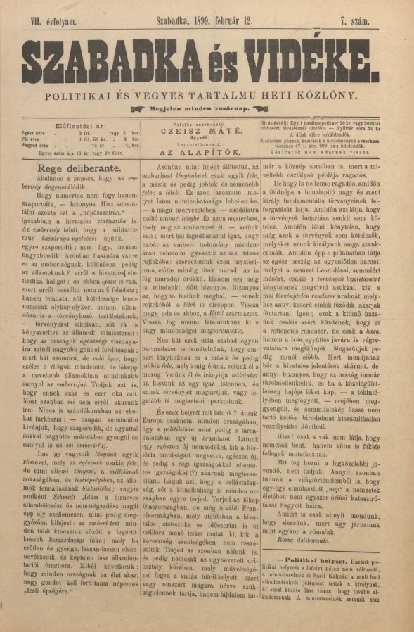Szabadka és vidéke II, 7. évf. 1899. február 12. 7. sz.