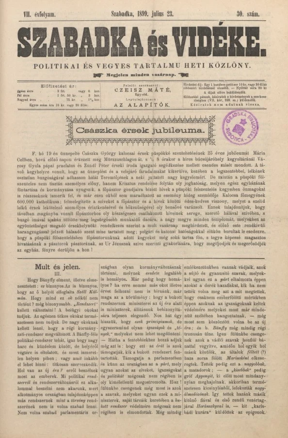 Szabadka és vidéke II, 7. évf. 1899. július 23. 30. sz.