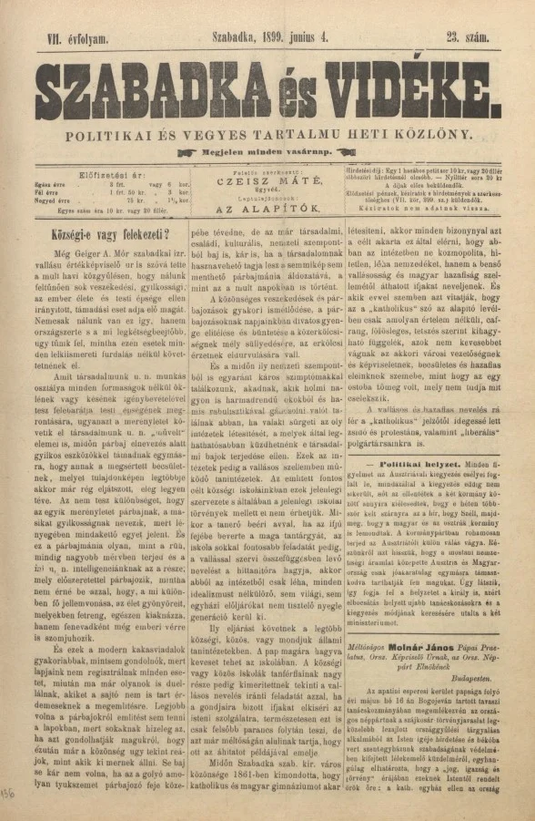 Szabadka és vidéke II, 7. évf. 1899. június 4. 23. sz.