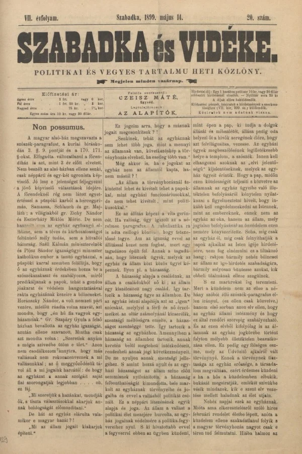 Szabadka és vidéke II, 7. évf. 1899. május 14. 20. sz.