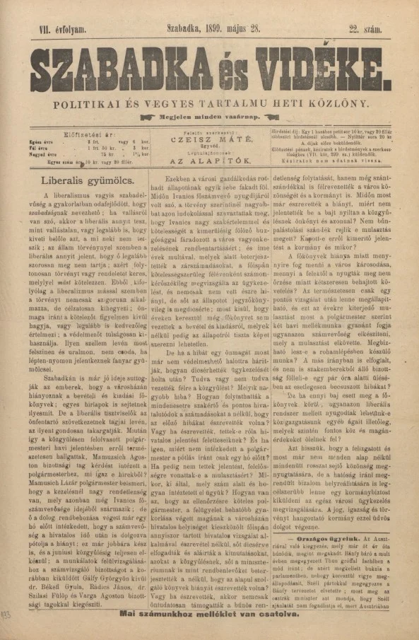Szabadka és vidéke II, 7. évf. 1899. május 28. 22. sz.