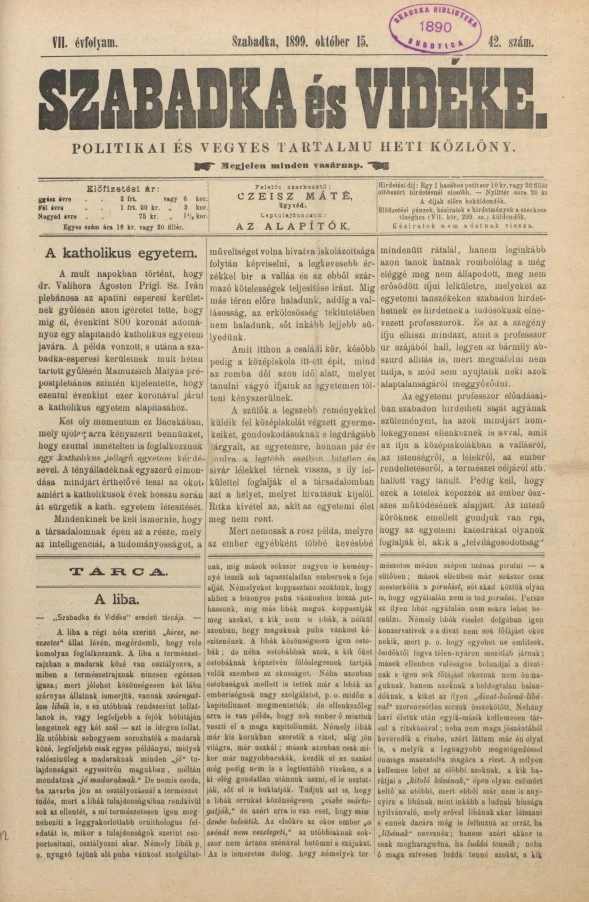 Szabadka és vidéke II, 7. évf. 1899. október 15. 42. sz.